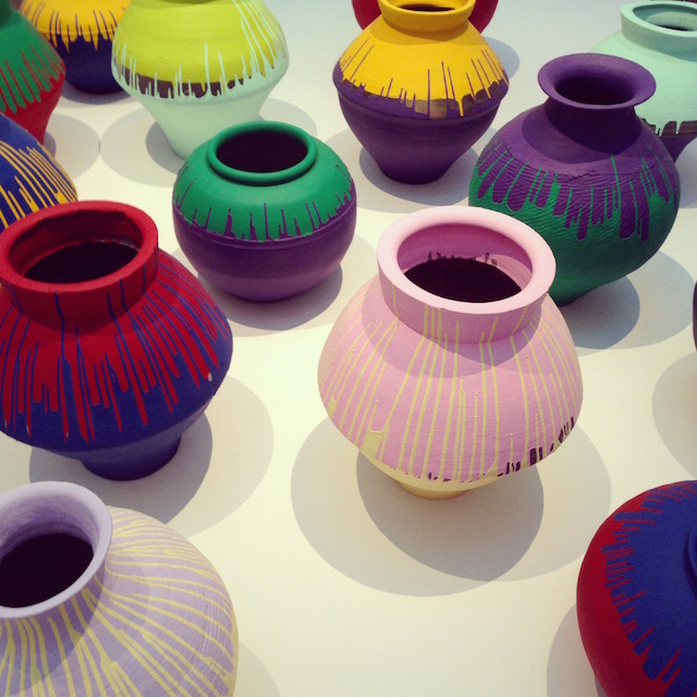 Of the installations, I was most afflicted by his metamorphosis of a series of historic ceramic vessels. From Neolithic pottery to Qing dynasty porcelains, he diverted their value, making a statement about how China has ultimately deteriorated in pieces like Coloured Vases, where he painted over Han dynasty (206BC-220AD) and Neolithic (5000-3000BC) vases with industrial paint. The photographic series Dropping a Han Dynasty Urn captured Ai Weiwei destroying a watershed of Chinese culture, as if he were slashing an Old Master work. Oddly, given his penchant for destruction, he also celebrates Chinese craftsmanship in the series of porcelain crabs, He Xie, which protested the closure of his studio.