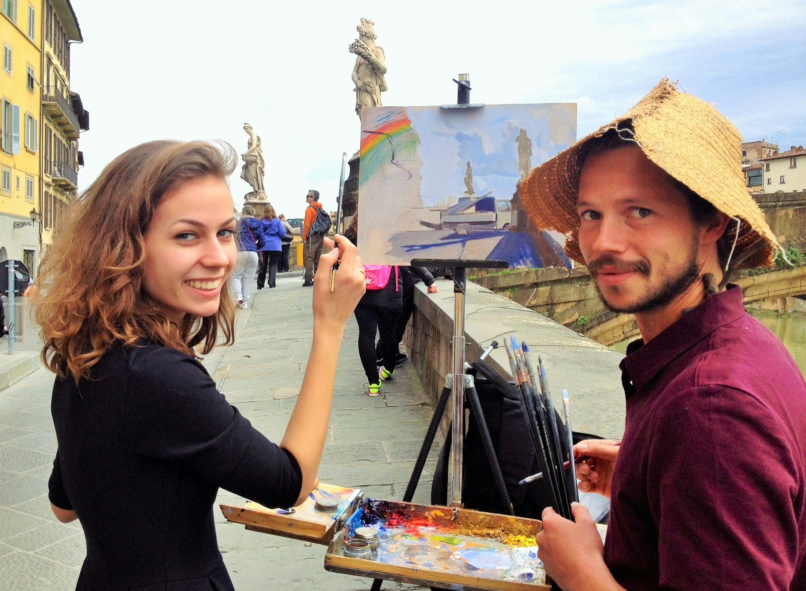 | With Joe Altwer, painting the Ponte Santa Trinita |
