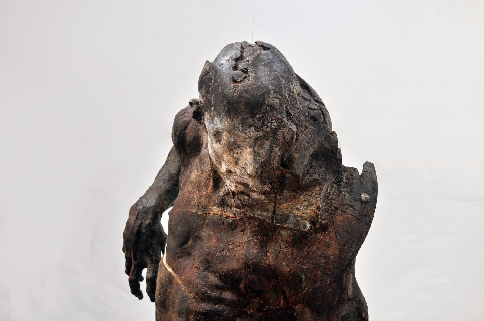 behold the man is Grzegorz’s first professional piece. Modelled whilst working on a diploma at the Academy of Fine Arts in Warsaw, it marks the beginning of Grzegorz’s sculpture as we know it today. He represents the human body in the reality that we too often ignore: ‘frail and transitory’. Through the unification of the base and figure, through medium, Grzegorz strove to communicate ‘man’s integrity with the world’. Neither is immune to destruction.