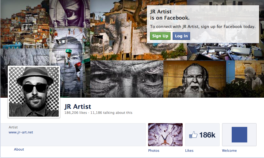 Over the last decade, JR’s full frame portraits have adorned streets worldwide. In 2006 his initially illegal Parisian project Portrait of a Generation gained official recognition. Thus far, JR’s Facebook page has 186,000 likes.